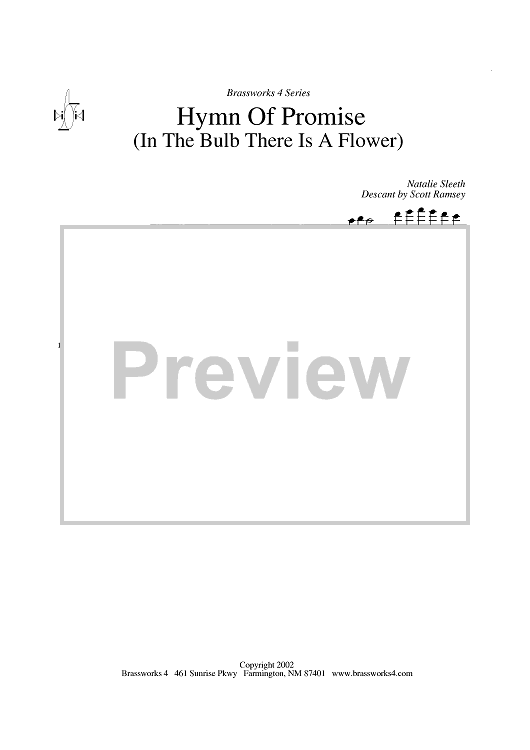 Digital Sheet Music for Hymn of Promise (in the Bulb There is a Flower) - Descant in C BC by Scott A. Ramsey, Natalie Sleeth scored for Brass Quartet with Optional Descant; id:317130
