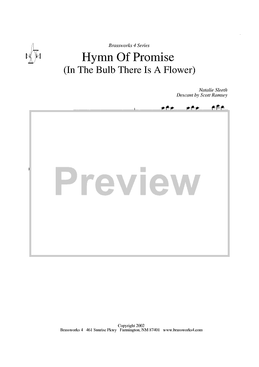 Digital Sheet Music for Hymn of Promise (in the Bulb There is a Flower) - Trombone by Scott A. Ramsey, Natalie Sleeth scored for Brass Quartet with Optional Descant; id:317133