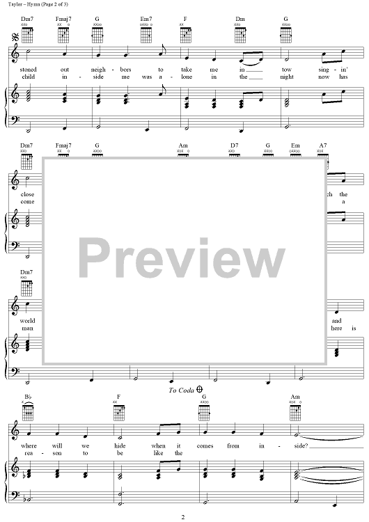 Digital Sheet Music for Hymn by James Taylor scored for Piano/Vocal/Chords; id:318656
