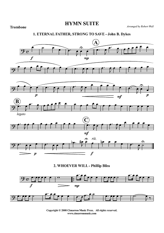 Digital Sheet Music for Hymn Suite - Trombone by , Various, Robert Wall scored for Brass Quintet; id:416249