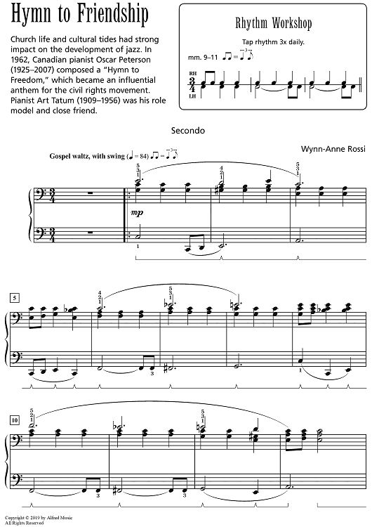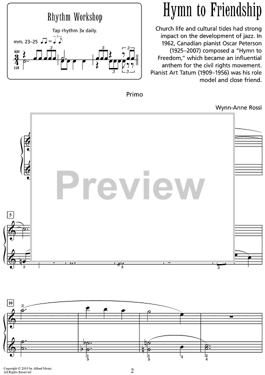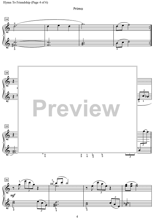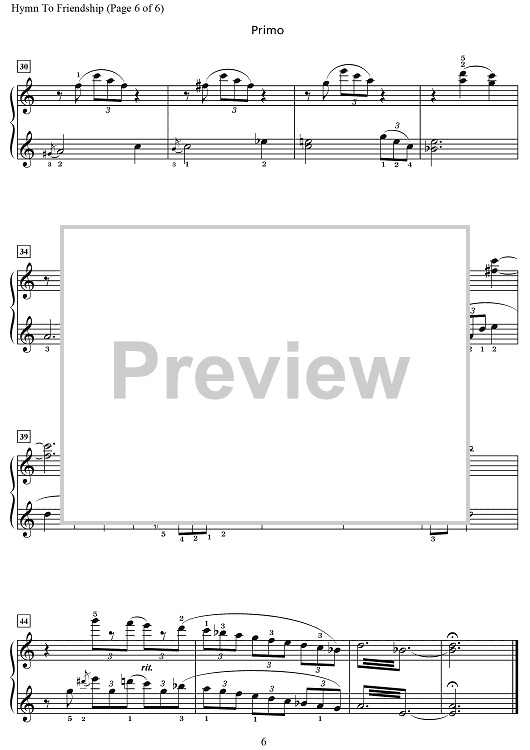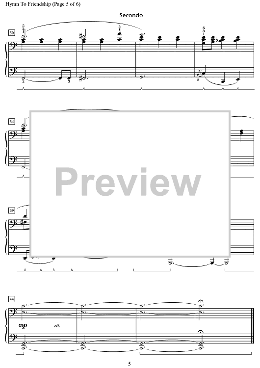 Digital Sheet Music for Hymn to Friendship by Wynn-Anne Rossi scored for 1 Piano, 4 Hands; id:469659