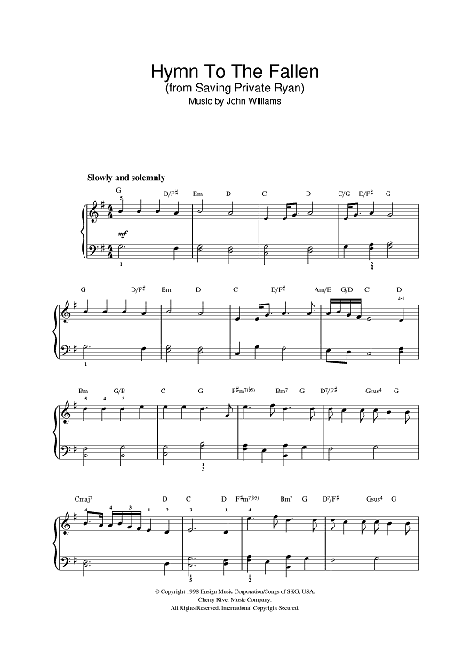 "Hymn To The Fallen (from Saving Private Ryan)" Sheet Music by John Williams