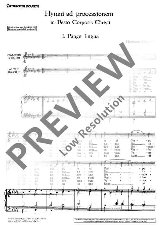 Digital Sheet Music for Hymni ad processionem in Festo Corporis Christi - Score by Hermann Schroeder scored for Mixed Choir (2 Equal Or 4 Mixed Voices) With Wind Instruments Or Organ; id:471554