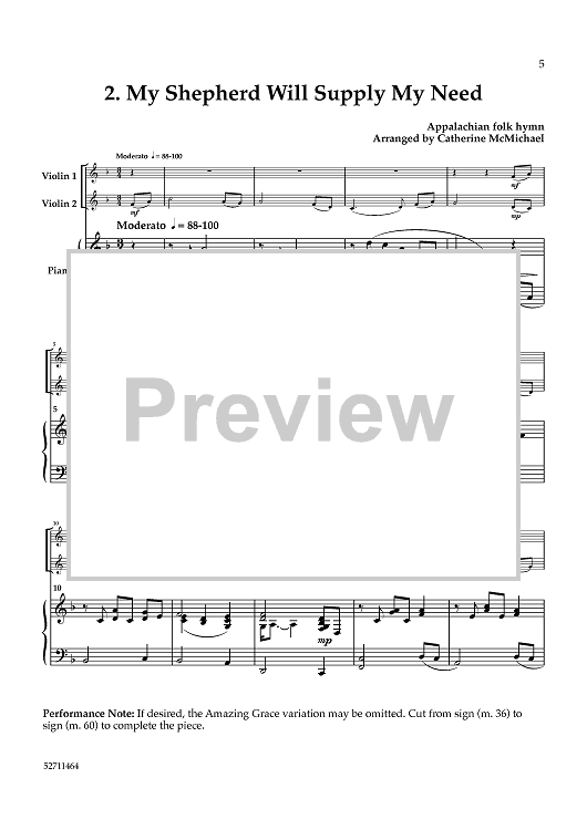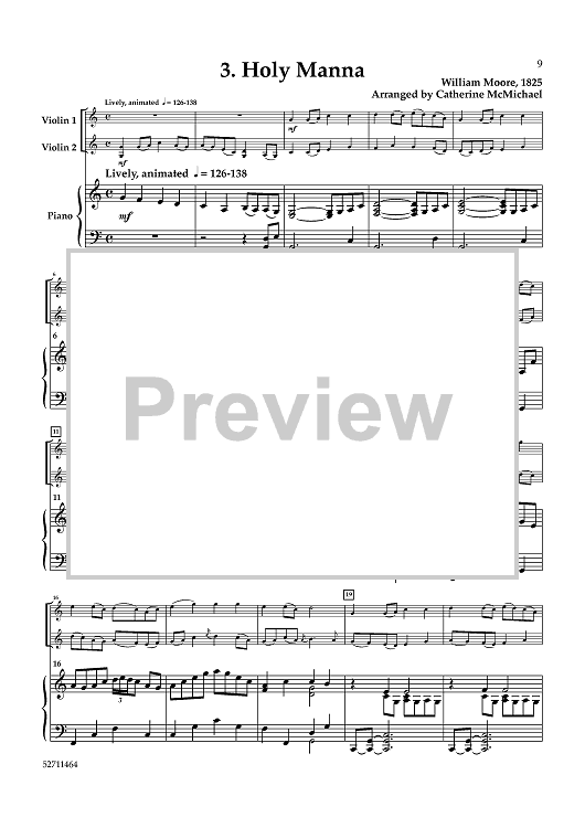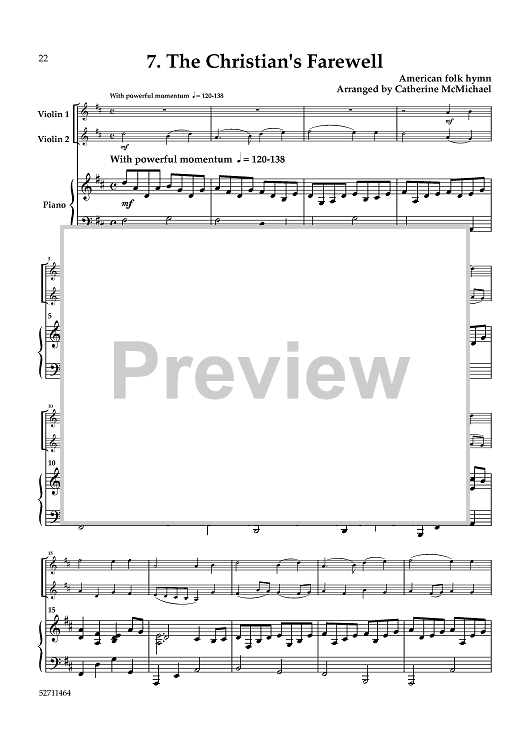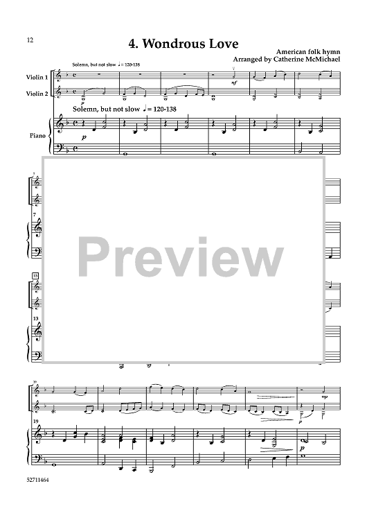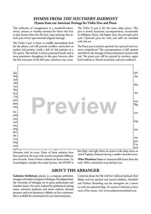 Digital Sheet Music for Hymns from "The Southern Harmony" for 2 Violins and Piano - Piano by , Various, Catherine McMichael scored for 2 Violins and Piano; id:464464