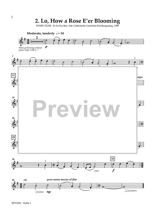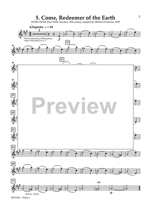 Digital Sheet Music for Hymns of Advent for 2 Violins and Piano - Violin 1 by Various, Catherine McMichael scored for String Quartet; id:461139