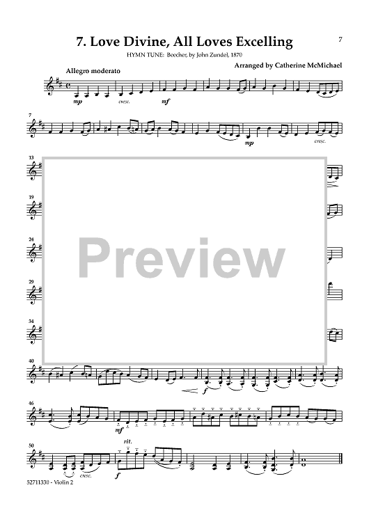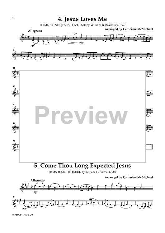 Digital Sheet Music for Hymns of Grace for 2 Violins and Piano - Violin 2 by , Various, Catherine McMichael scored for 2 Violins and Piano; id:464454