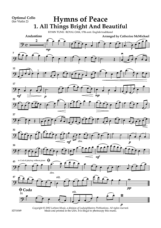 Digital Sheet Music for Hymns of Peace for 2 Violins and Piano - Cello (for Violin 2) by , Various, Catherine McMichael scored for 2 Violins and Piano; id:464444