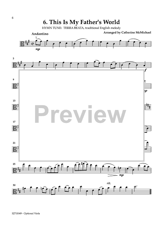 Digital Sheet Music for Hymns of Peace for 2 Violins and Piano - Viola (for Violin 2) by , Various, Catherine McMichael scored for 2 Violins and Piano; id:464443