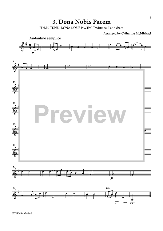Digital Sheet Music for Hymns of Peace for 2 Violins and Piano - Violin 1 by , Various, Catherine McMichael scored for 2 Violins and Piano; id:464441