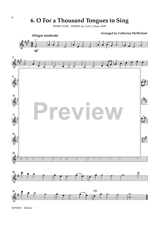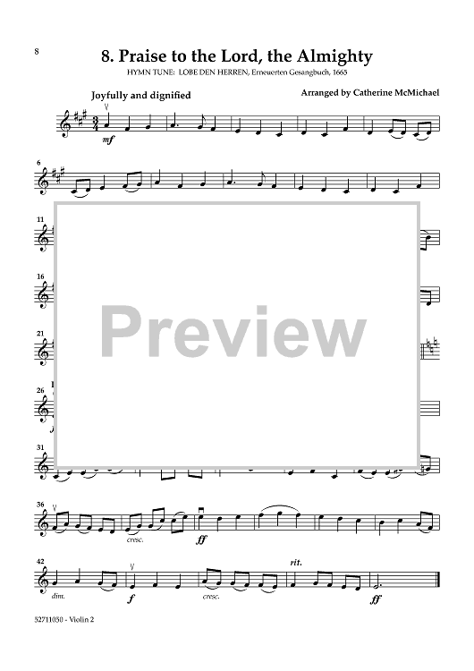 Digital Sheet Music for Hymns of Praise for 2 Violins and Piano - Violin 2 by , Various, Catherine McMichael scored for 2 Violins and Piano; id:464448