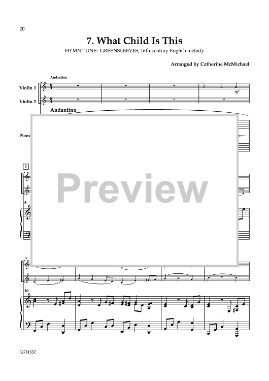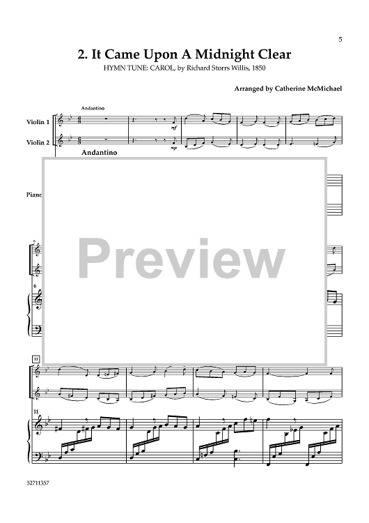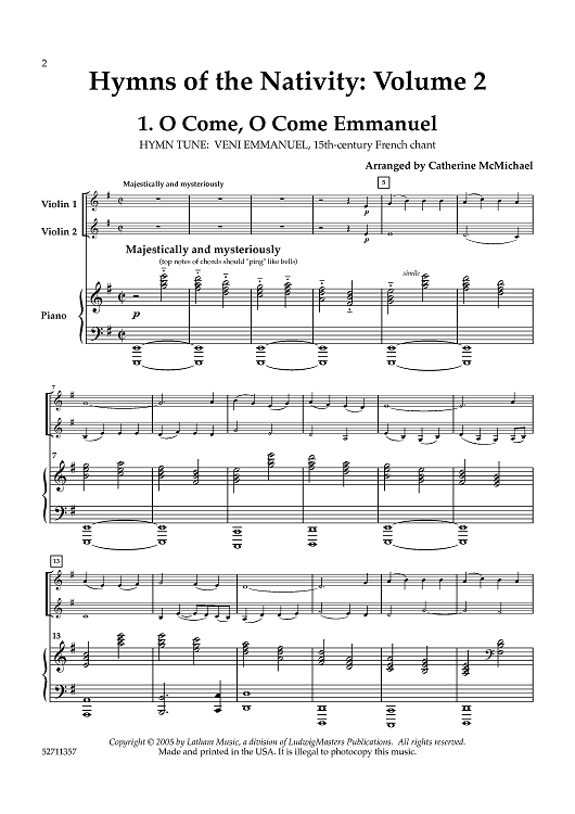 Digital Sheet Music for Hymns of the Nativity: Vol. 2 for 2 Violins and Piano - Piano by , Various, Catherine McMichael scored for String Quartet; id:461187