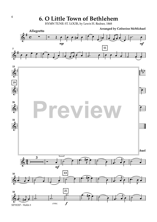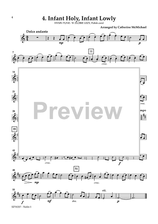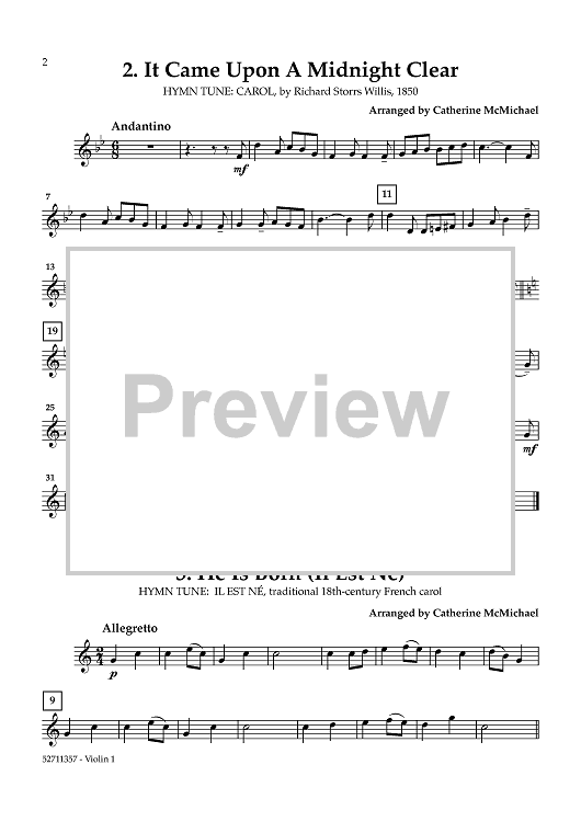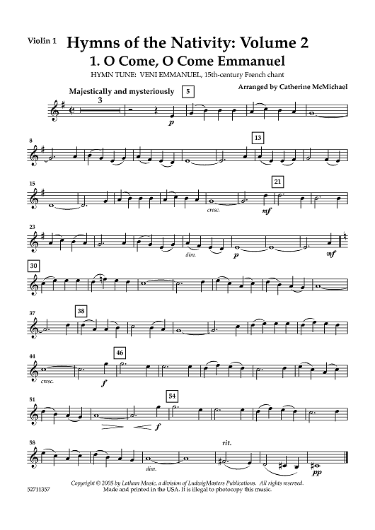 Digital Sheet Music for Hymns of the Nativity: Vol. 2 for 2 Violins and Piano - Violin 1 by Various, Catherine McMichael scored for String Quartet; id:461188