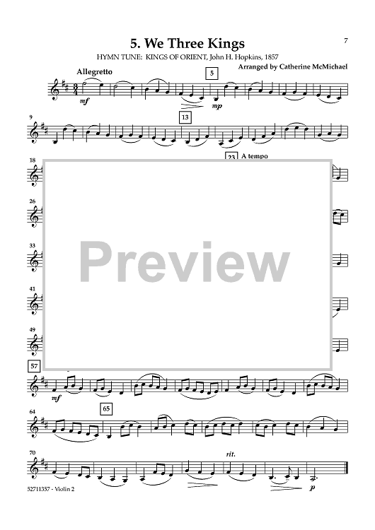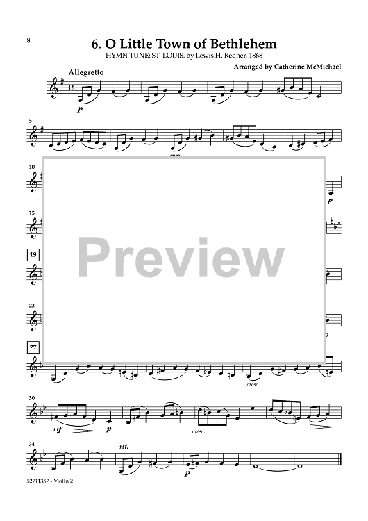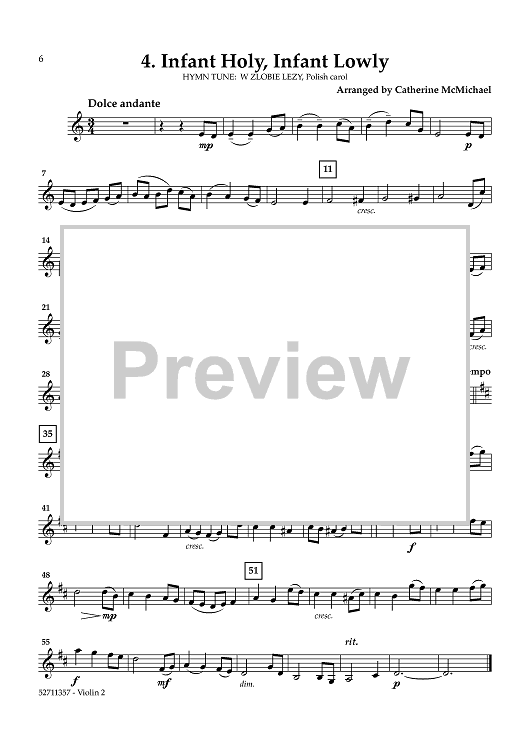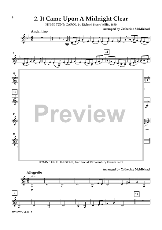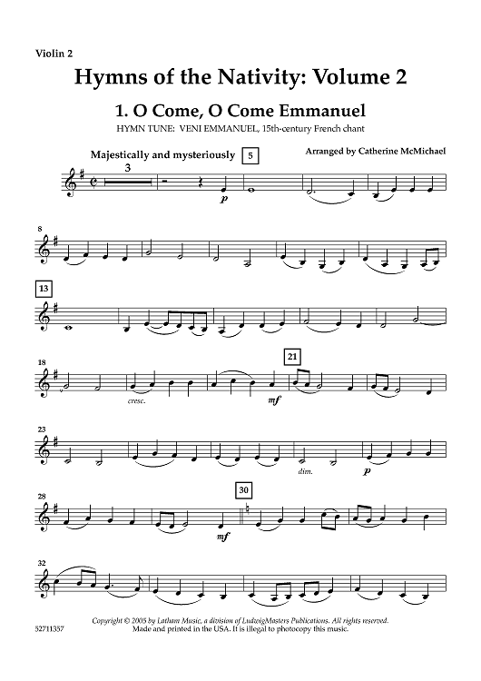 Digital Sheet Music for Hymns of the Nativity: Vol. 2 for 2 Violins and Piano - Violin 2 by Various, Catherine McMichael scored for String Quartet; id:461189