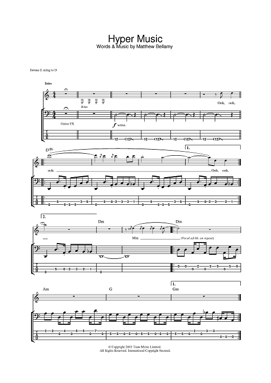 Digital Sheet Music for Hyper Music by Matthew Bellamy, Muse scored for Bass Tab; id:383405