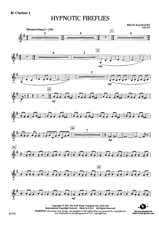Digital Sheet Music for Hypnotic Fireflies - Bb Clarinet 2 by Brian Balmages scored for Concert Band; id:439970