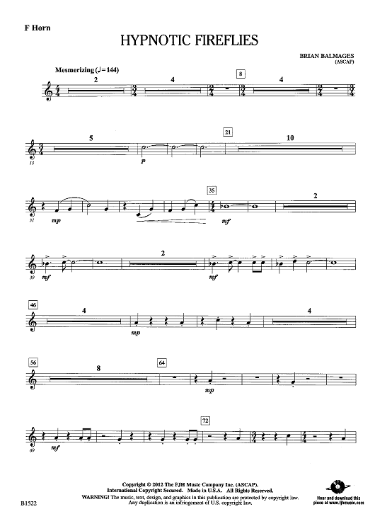 Digital Sheet Music for Hypnotic Fireflies - F Horn by Brian Balmages scored for Concert Band; id:439979