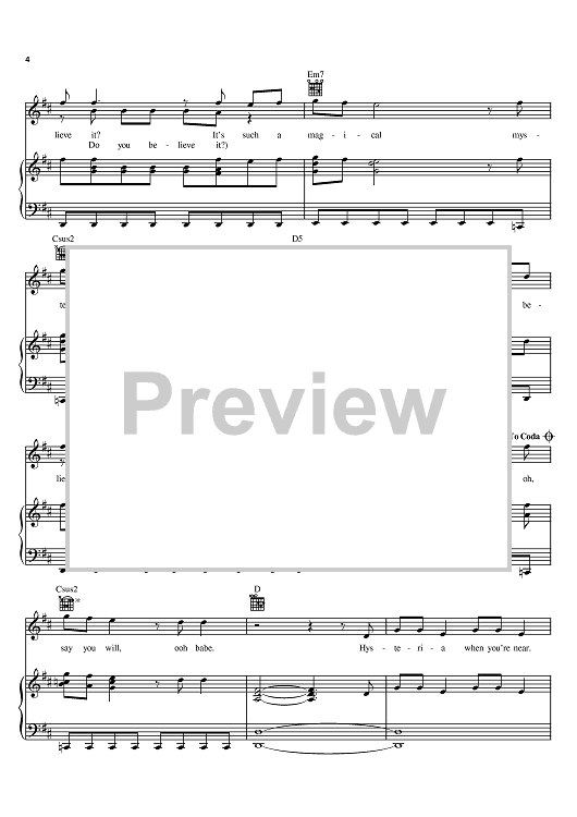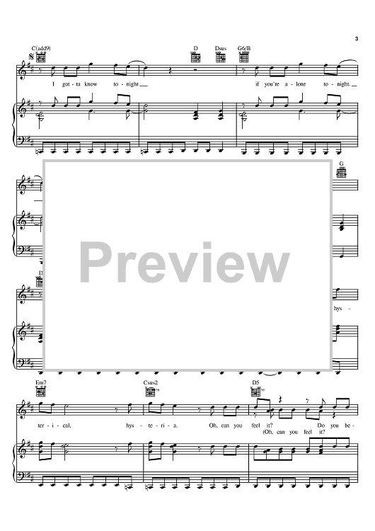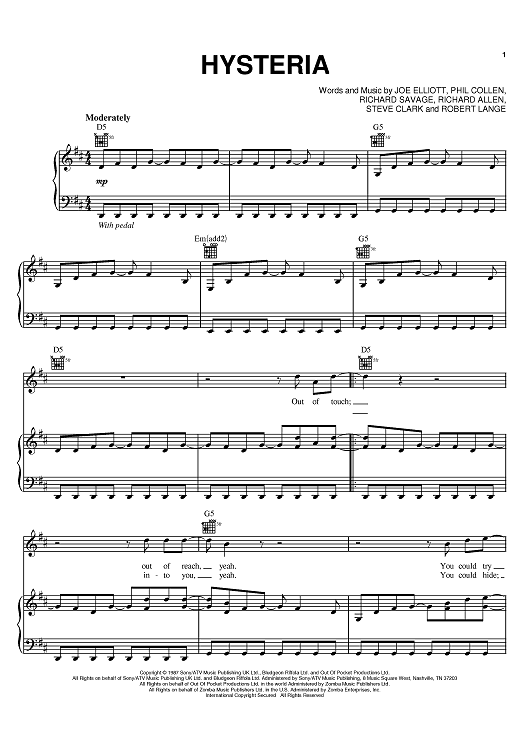 Digital Sheet Music for Hysteria by Steve Clark, Def Leppard, Robert Lange, Joe Elliott, Phil Collen, Richard Allen, Rick Savage scored for Piano/Vocal/Chords; id:388978