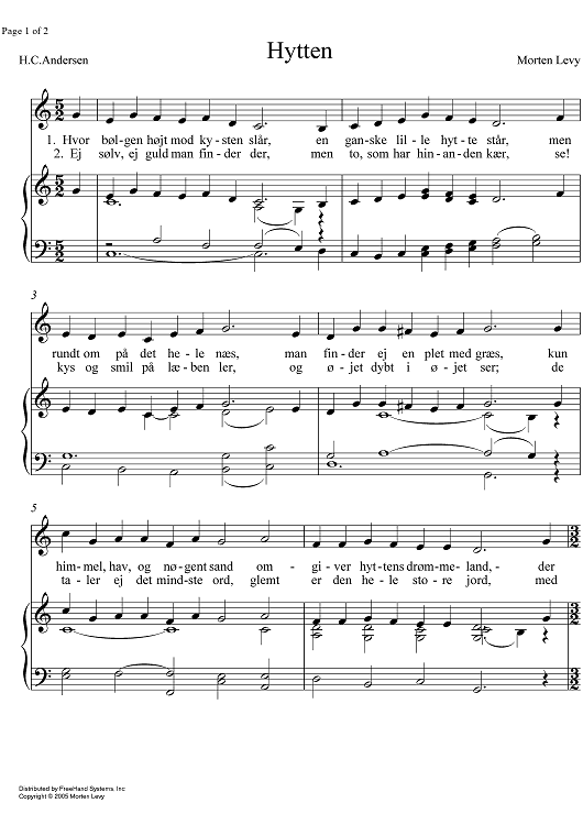 Digital Sheet Music for Hytten by , Morten Levy scored for Bass or Alto/Piano; id:354209