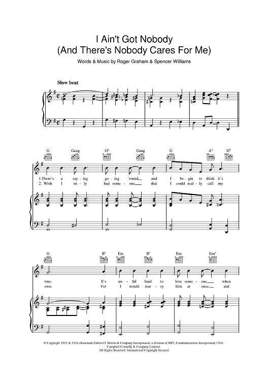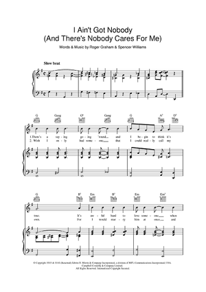 Digital Sheet Music for I Ain't Got Nobody (And There's Nobody Cares For Me) by Spencer Williams, Roger Graham scored for Piano/Vocal/Chords; id:392747