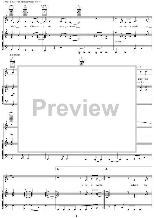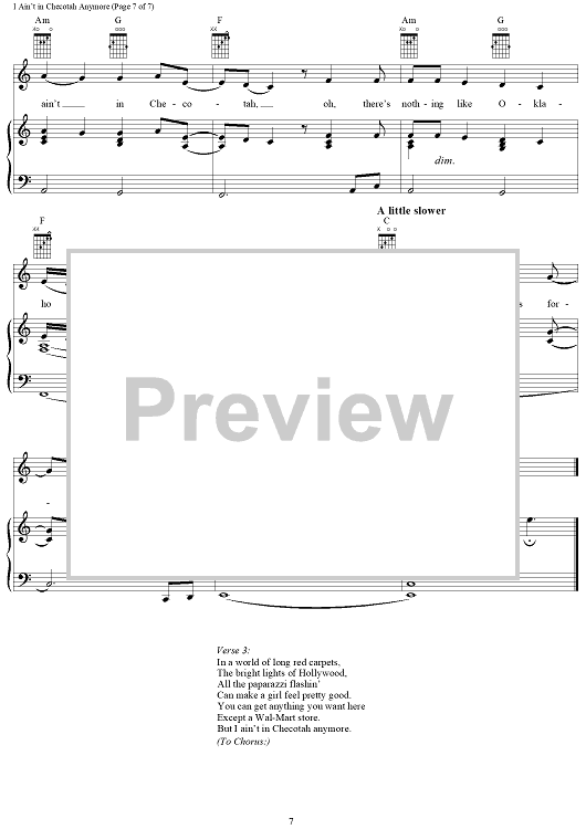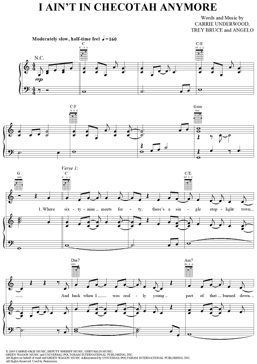 Digital Sheet Music for I Ain't in Checotah Anymore by Trey Bruce, Angelo Petraglia, Carrie Underwood scored for Piano/Vocal/Chords; id:362110