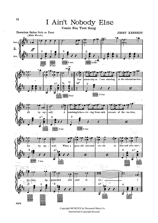 "I Ain't Nobody Else" Sheet Music by Jimmy Kennedy