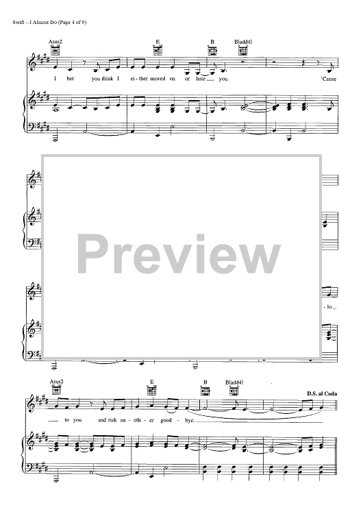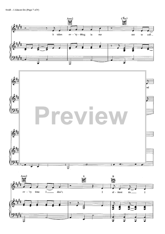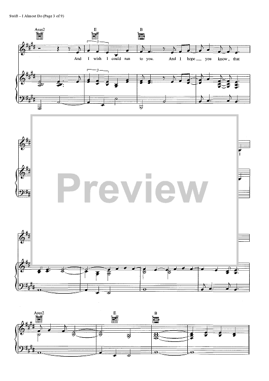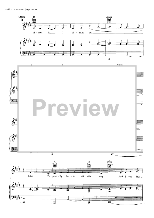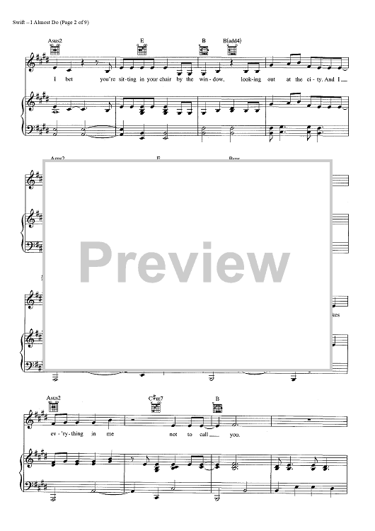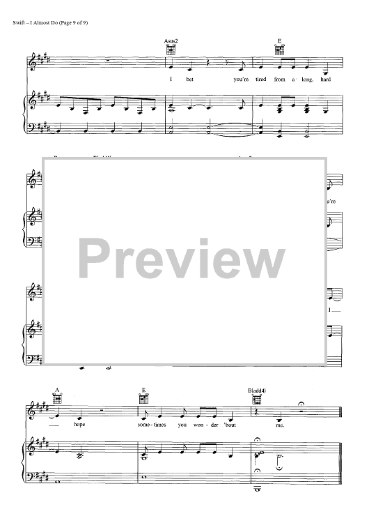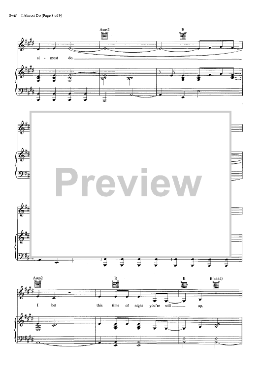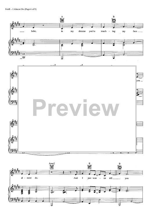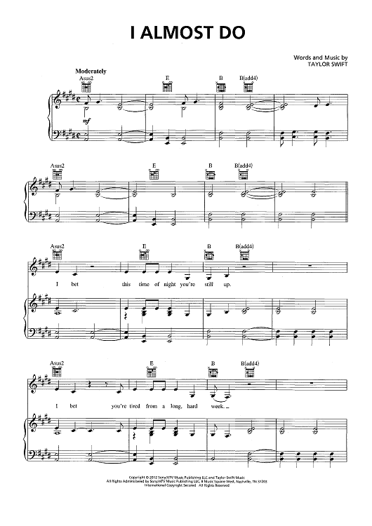 Digital Sheet Music for I Almost Do by Taylor Swift scored for Piano/Vocal/Chords; id:445597
