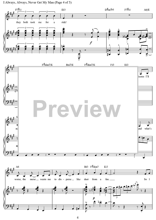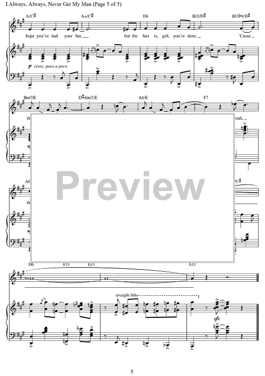 Digital Sheet Music for I Always Always Never Get My Man by Brian Chase, Cinco Paul, Doug Besterman scored for Piano Solo; id:470456