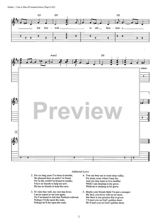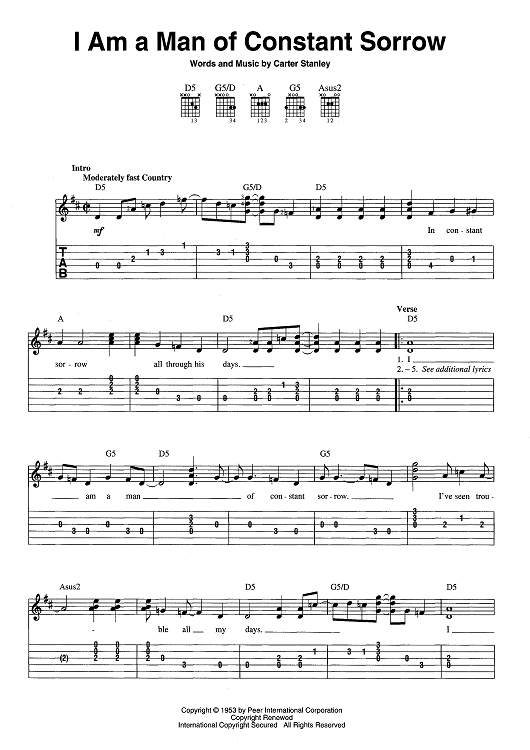 "I Am A Man Of Constant Sorrow" Sheet Music by The Stanley Brothers