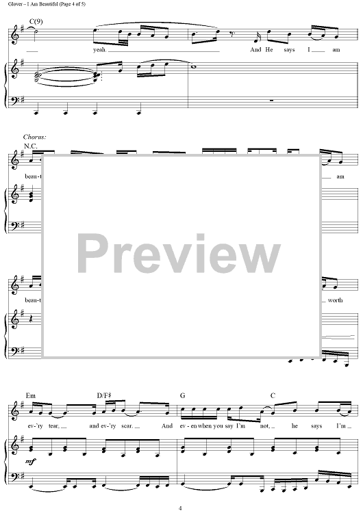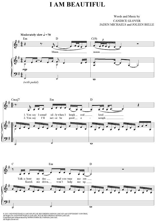 Digital Sheet Music for I Am Beautiful by Candice Glover, Jaden Michaels, Joleen Belle scored for Piano/Vocal/Chords; id:436601