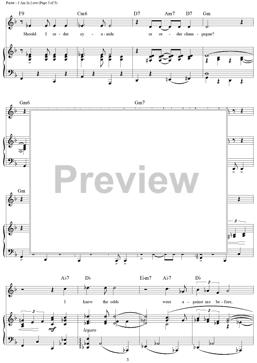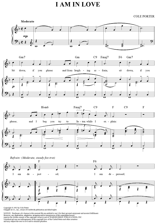 Digital Sheet Music for I Am In Love by Cole Porter scored for Piano/Vocal/Chords; id:320766