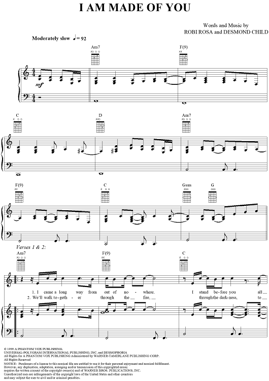 Digital Sheet Music for I Am Made of You by Desmond Child, Robi Rosa, Ricky Martin scored for Piano/Vocal/Chords; id:255845