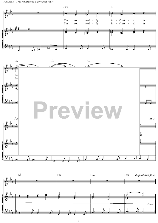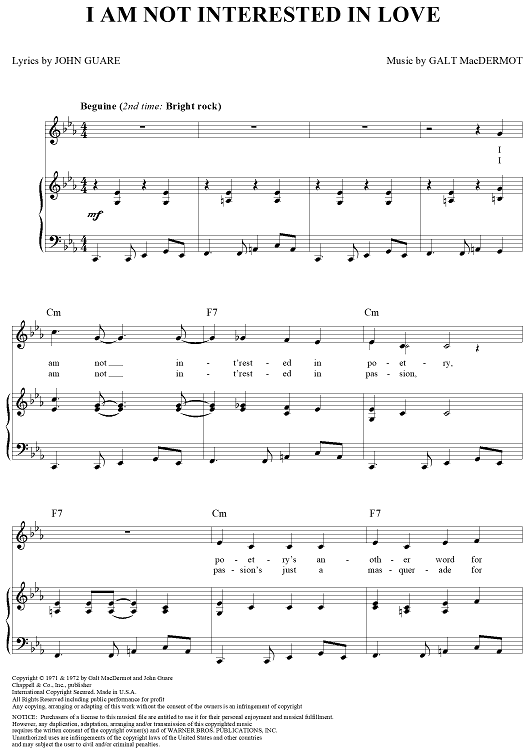 "I Am Not Interested in Love" Sheet Music by Galt MacDermot