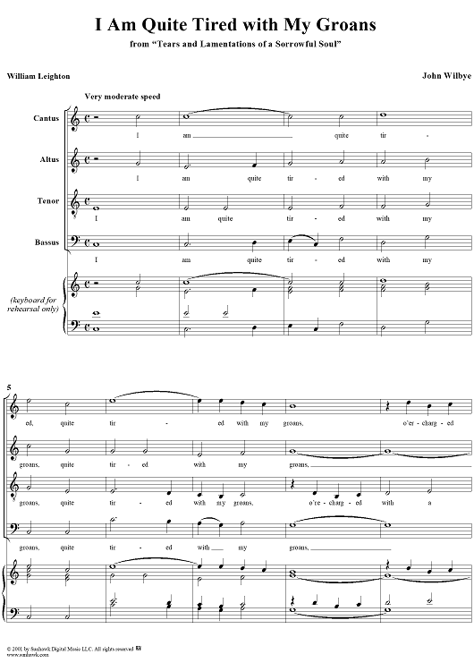 Digital Sheet Music for I Am Quite Tired with My Groans by John Wilbye, William Leighton scored for Four-part Mixed Chorus; id:170115