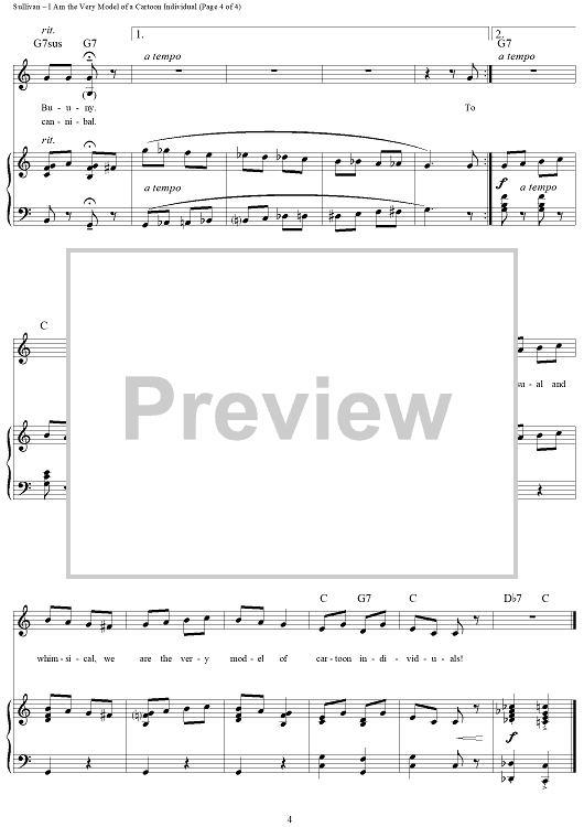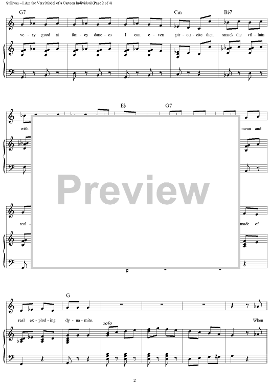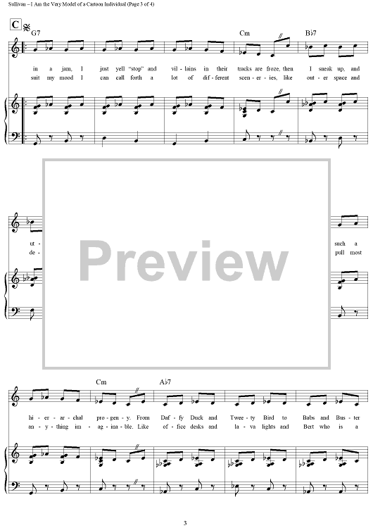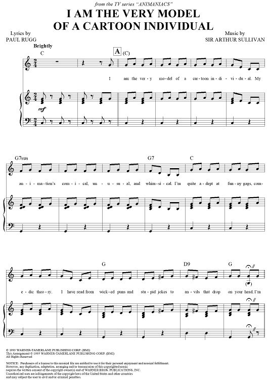Digital Sheet Music for I Am The Very Model Of A Cartoon Individual by Arthur Sullivan, Paul Rugg scored for Piano/Vocal/Chords; id:259422