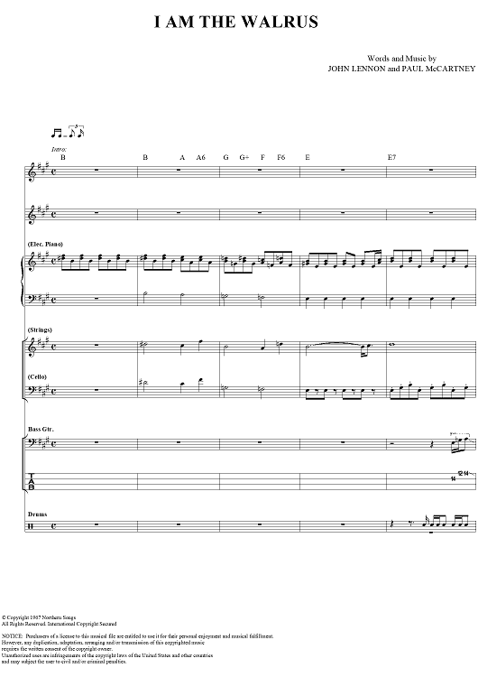 "I Am the Walrus" Sheet Music by The Beatles
