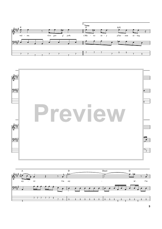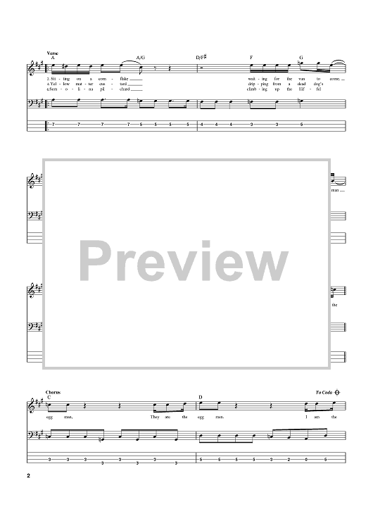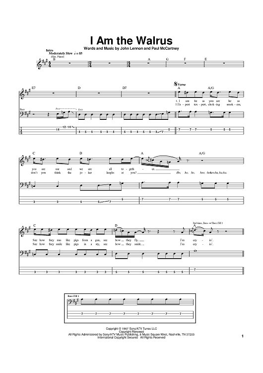 Digital Sheet Music for I Am The Walrus by Paul McCartney, The Beatles, John Lennon scored for Bass Tab; id:369526