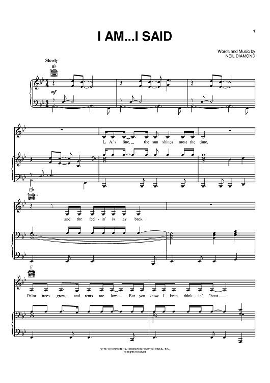 Digital Sheet Music for I Am...I Said by Neil Diamond scored for Piano/Vocal/Chords; id:371325