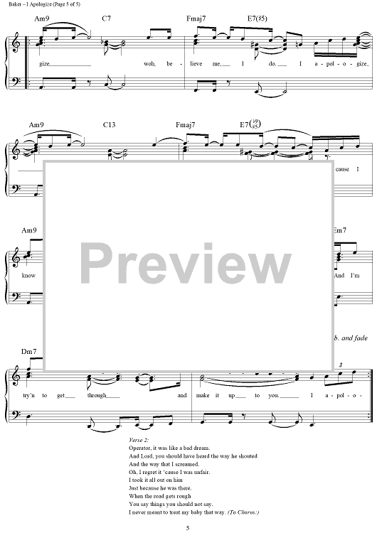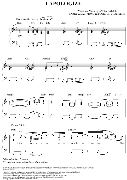 Digital Sheet Music for I Apologize by Gordon Chambers, Anita Baker, Barry Eastmond scored for Piano/Vocal/Chords; id:116229
