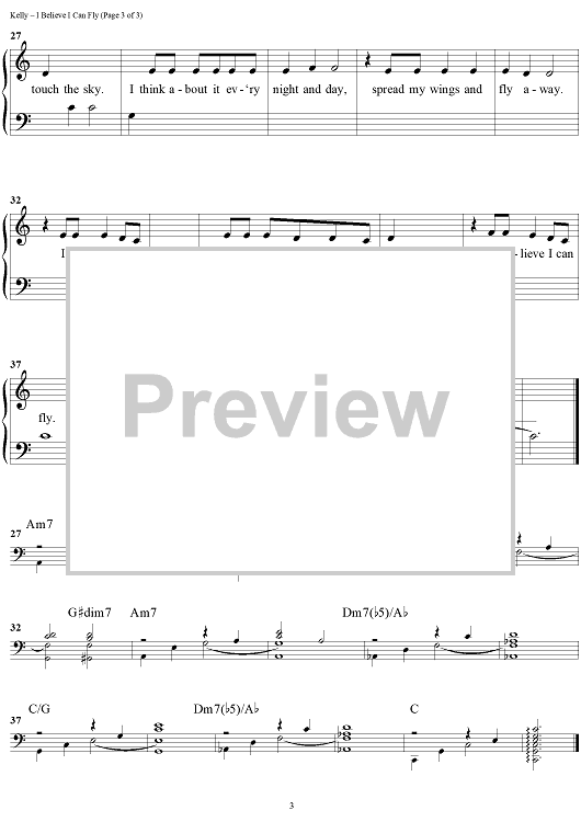 "I Believe I Can Fly" Sheet Music by R. Kelly