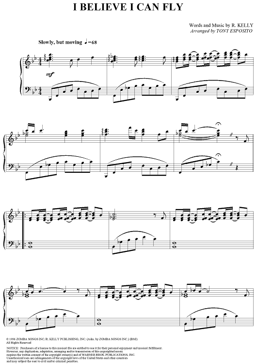 "I Believe I Can Fly" Sheet Music by R. Kelly