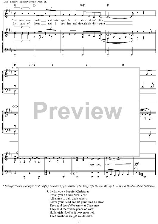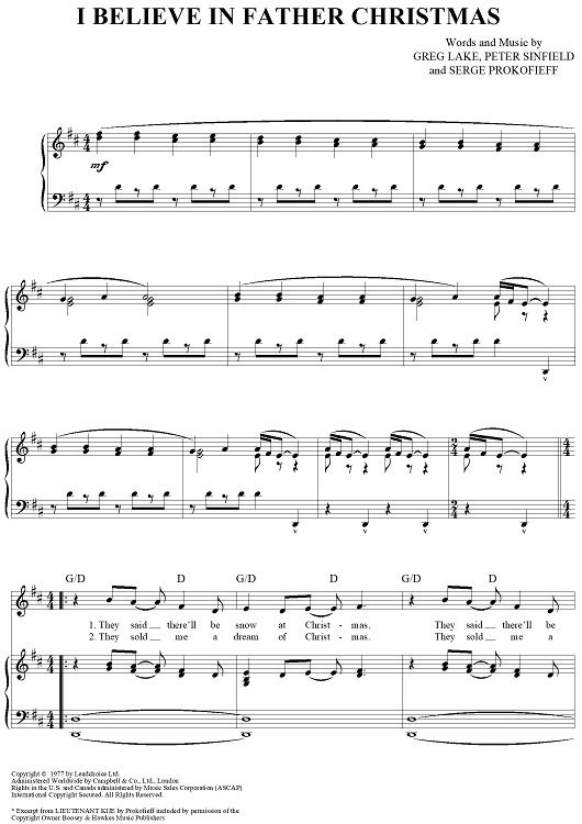 Digital Sheet Music for I Believe In Father Christmas by Greg Lake, Peter Sinfield, Sergei Prokofieff, Emerson, Lake & Palmer scored for Piano/Vocal/Chords; id:436555