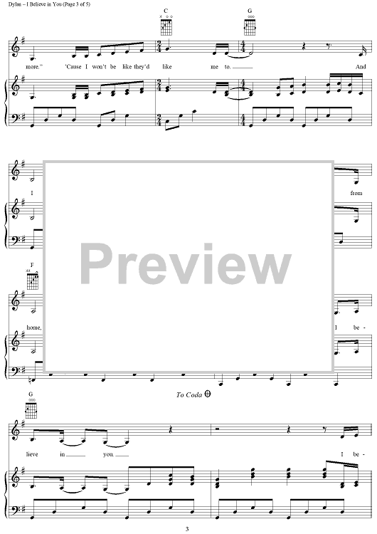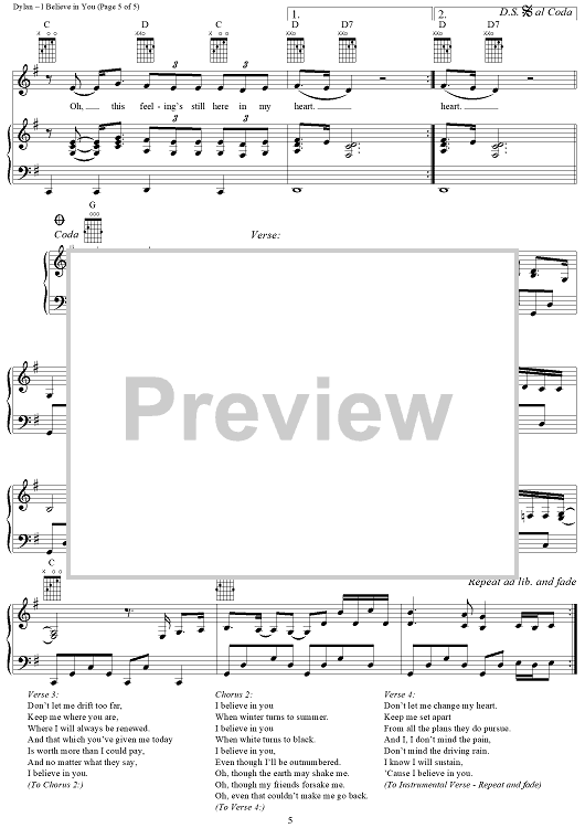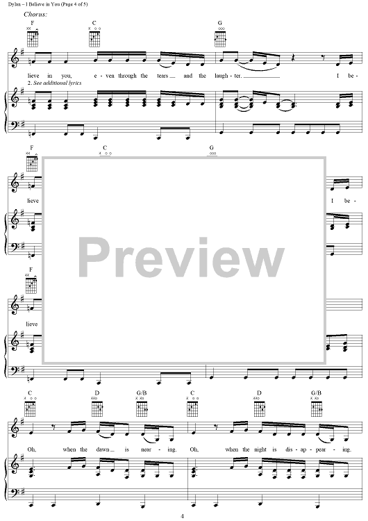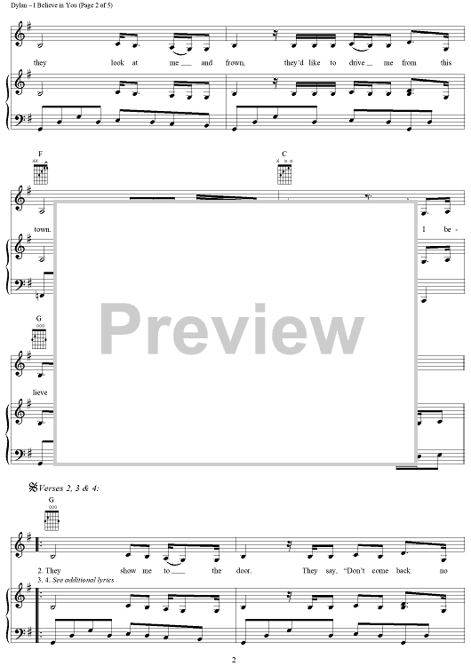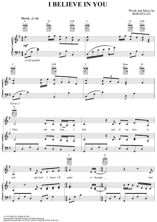 Digital Sheet Music for I Believe in You by Bob Dylan, Anne Murray scored for Piano/Vocal/Chords; id:289008