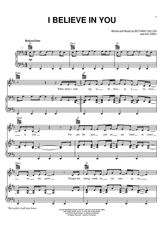 Digital Sheet Music for I Believe In You by Ed Cash, Bethany Dillon scored for Piano/Vocal/Chords; id:387094
