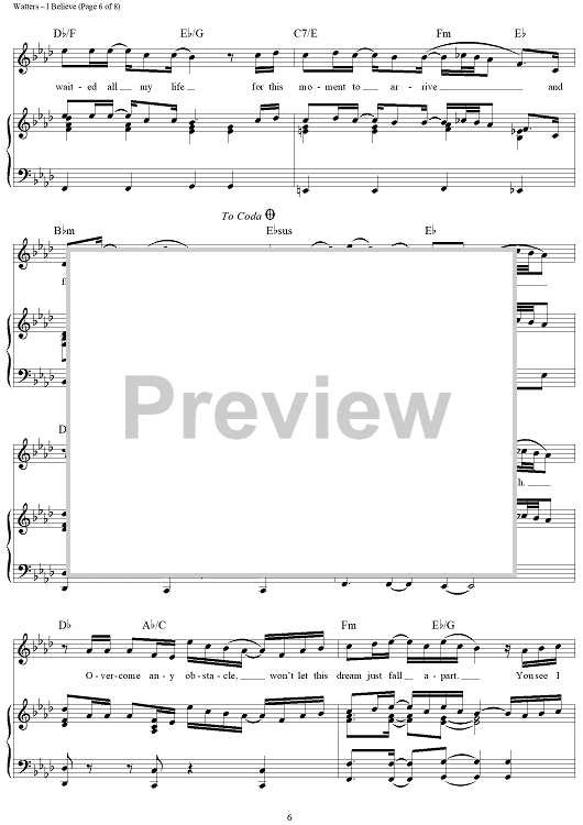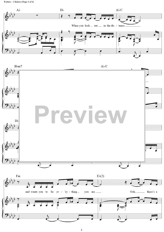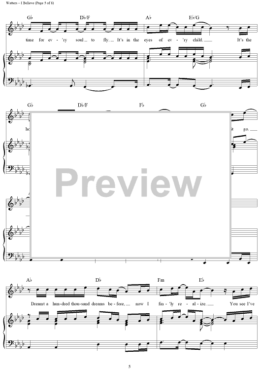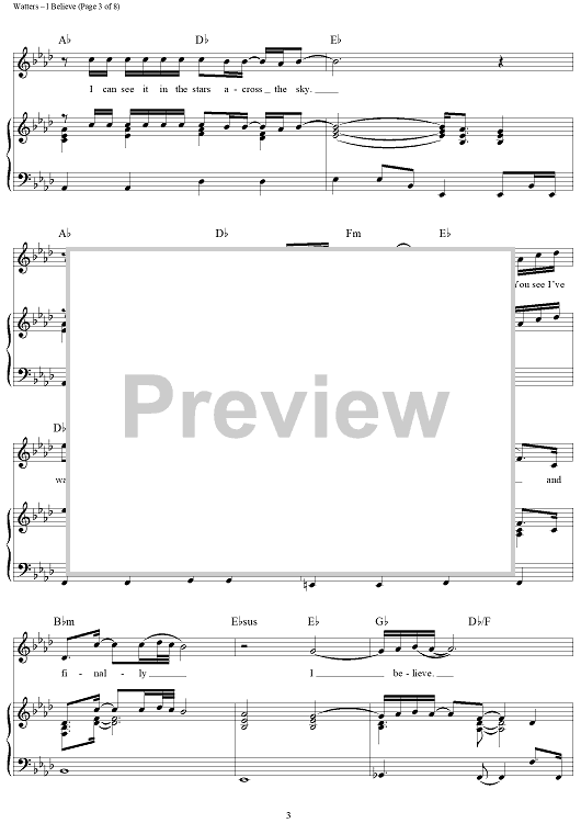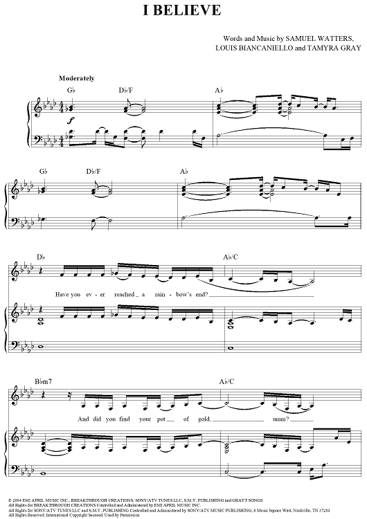 Digital Sheet Music for I Believe by Louis Biancaniello, Sam Watters, Tamyra Gray, Fantasia scored for Piano/Vocal/Chords; id:361814