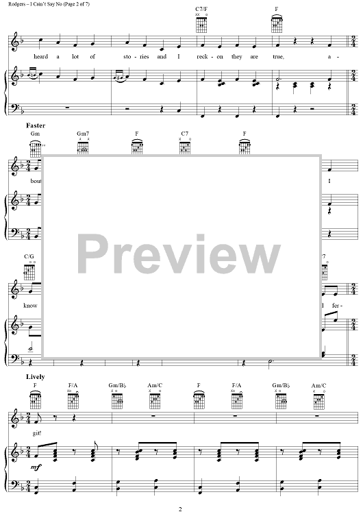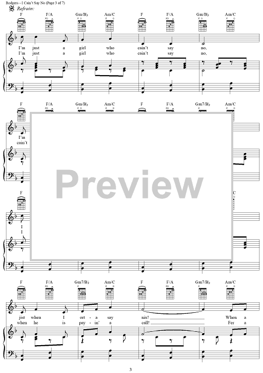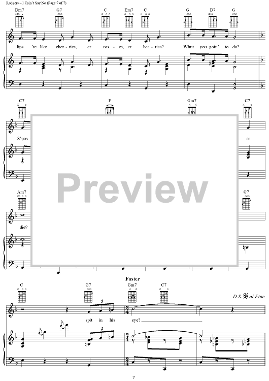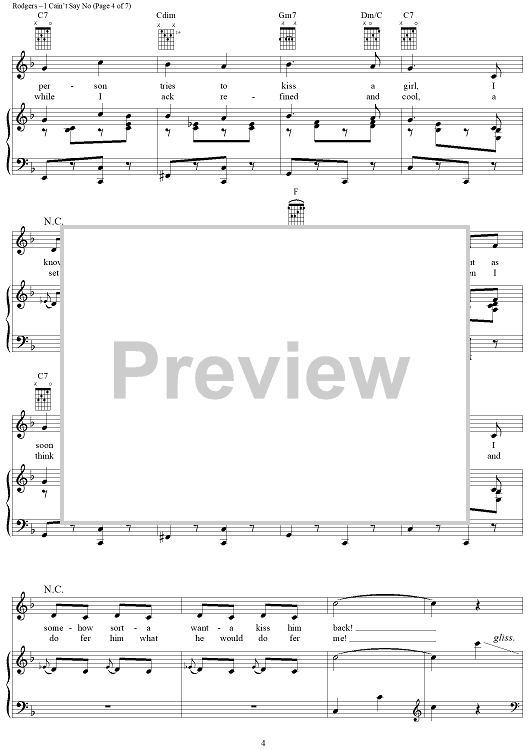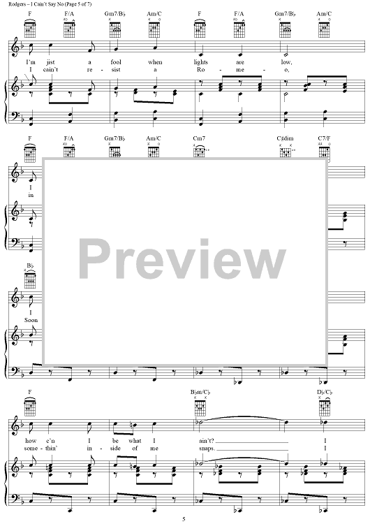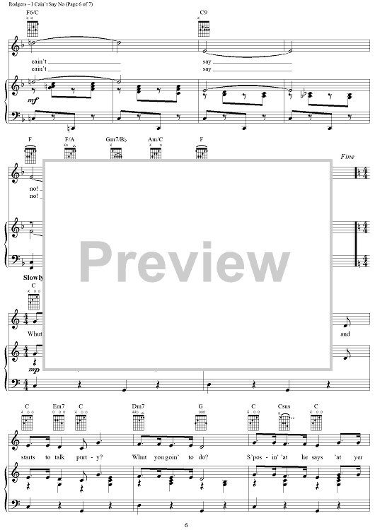 Digital Sheet Music for I Cain't Say No by Richard Rodgers, Oscar Hammerstein II scored for Piano/Vocal/Chords; id:367058