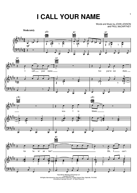 Digital Sheet Music for I Call Your Name by Paul McCartney, The Beatles, John Lennon scored for Piano/Vocal/Chords; id:385551