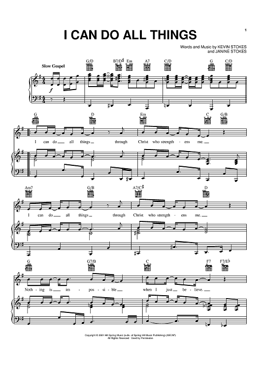 Digital Sheet Music for I Can Do All Things by Janine Stokes, Kevin Stokes scored for Piano/Vocal/Chords; id:373736