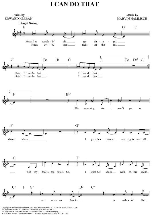 "I Can Do That" Sheet Music by Marvin Hamlisch