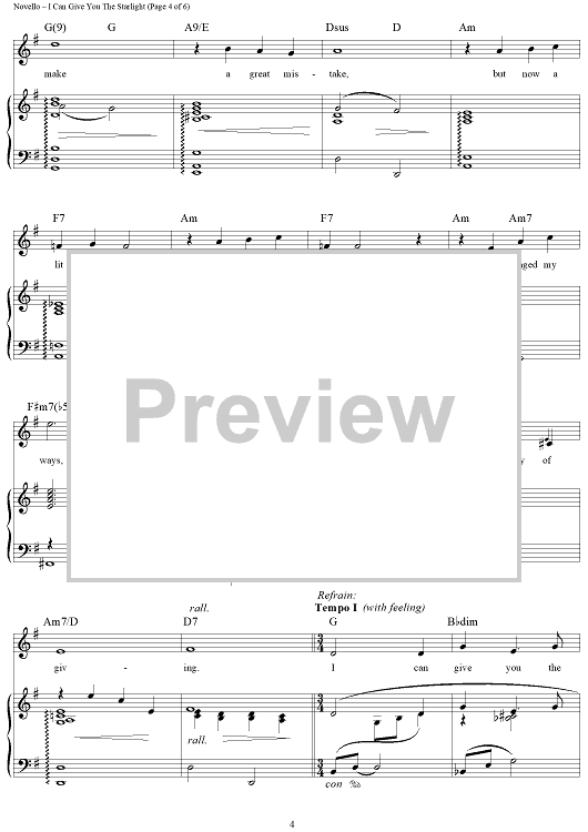 Digital Sheet Music for I Can Give You The Starlight by Ivor Novello, Christopher Hassall scored for Piano/Vocal/Chords; id:425795