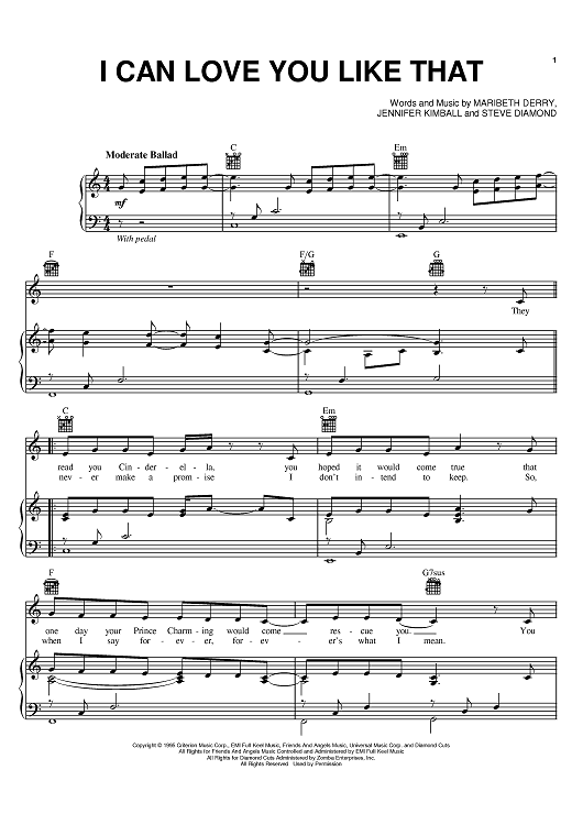 Digital Sheet Music for I Can Love You Like That by John Michael Montgomery, Steve Diamond, Maribeth Derry, Jennifer Kimball, All-4-One scored for Piano/Vocal/Chords; id:367968